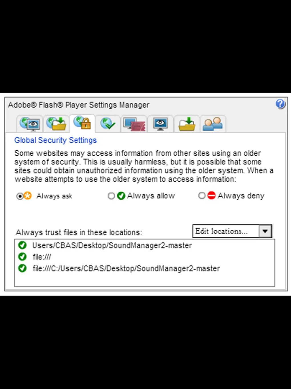 Had a difficult time with ExternalInterface today. Ok, swfs work nicely together with javascript on a webserver, but when you access them locally, there are some security issues you have to deal with. The app I needed to created needed communication in both ways, so from swf to javascript and vice versa.
