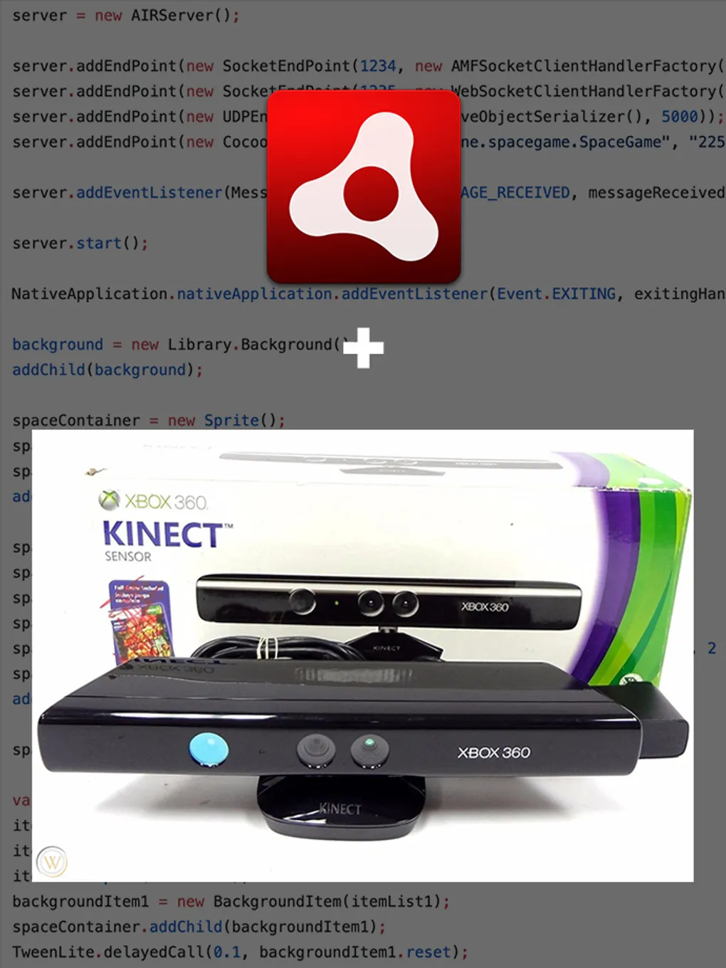 I’ve been playing with native extensions for air for a couple of weeks now. One of the things I wanted to do, was to get the Kinect working through a native extension. I’ve posted some sample libraries before, where the kinect date was sent to Adobe AIR through UDP sockets. However, the bandwith is quite limited, and there are noticable delays.